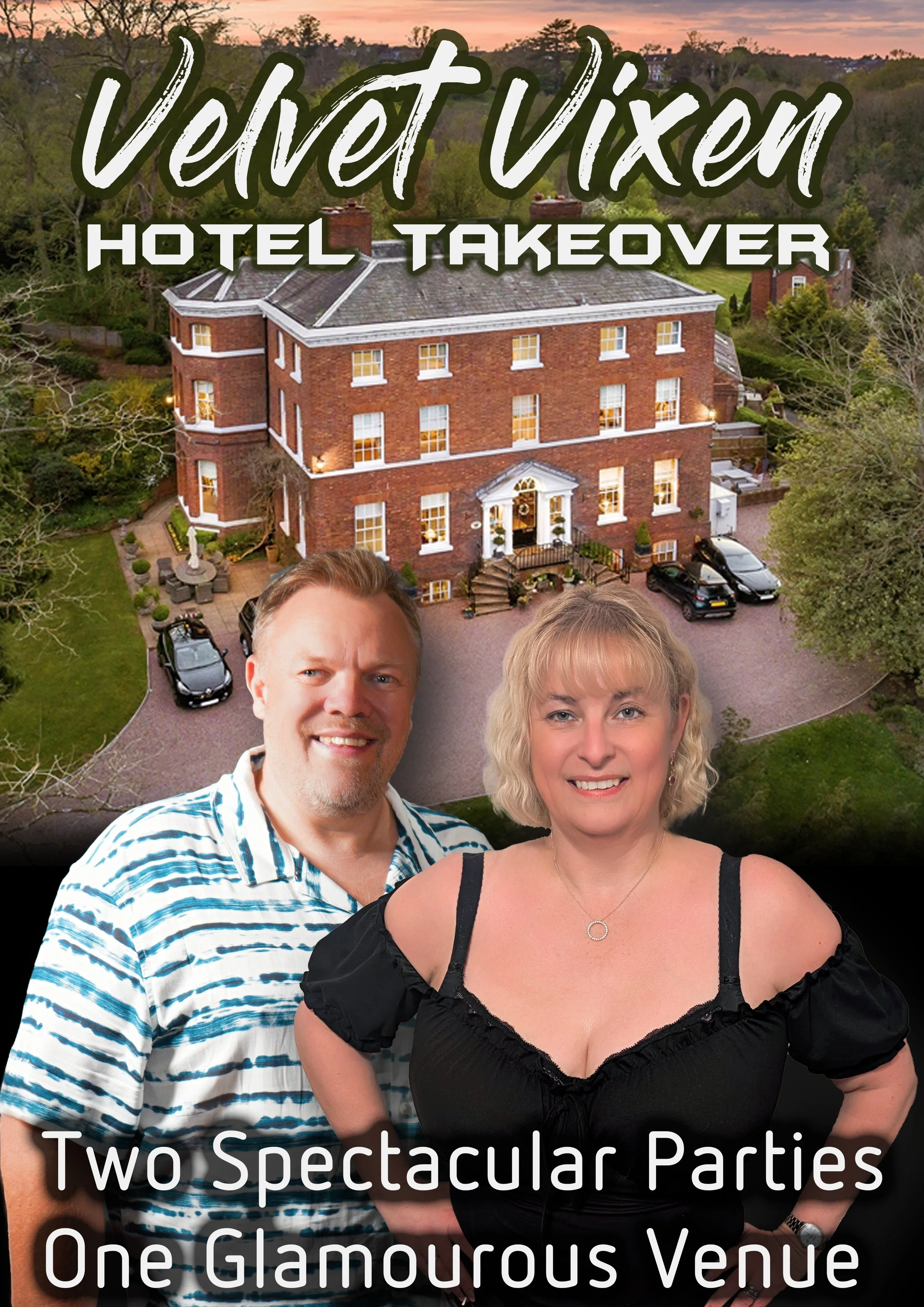 Join celebrity lifestyle podcasters Mr & Mrs N for a V2V - V.I.P experience. The naughty couple are taking over a luxurious Hotel in the beautifully picturesque county of Worcestershire. The hotel boasts stunning views from it’s secluded gardens, outdoor hot tubs, fully licenced bar and plenty of naughty nooks and cranny’s to explore. The lower quarters will be transformed into the ultimate play space for couples who wish to indulge their most intimate fantasies.